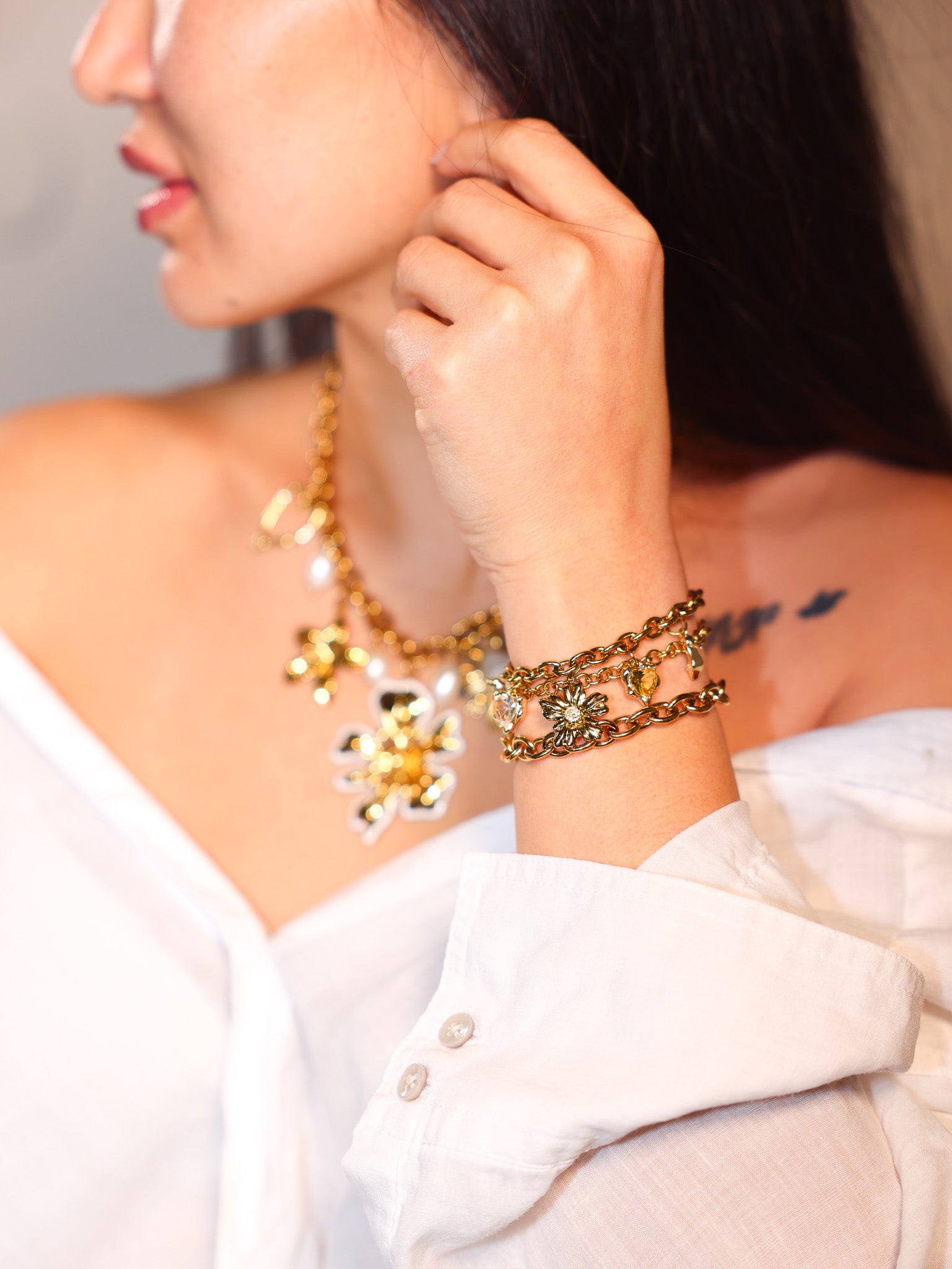 Korujemme materiaalit on valittu kestämään arkea ja käyttöä. Käytämme laadukkaita ja huolella valittuja materiaaleja, kuten aitoa kultapinnoitusta, helmiä, luonnonkiviä ja säihkyviä zirkonioita. Monipuolinen valikoima antaa vapauden luoda koruja, jotka ovat juuri sinun näköisiäsi.