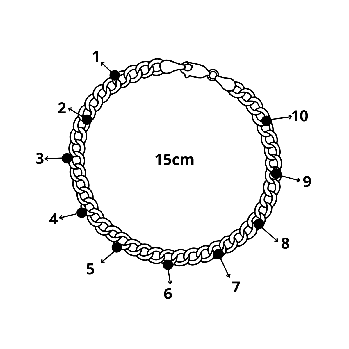 Jos haluat koruusi vain yhden charmin, sijoitamme sen automaattisesti ketjun keskelle. Valitse tällöin charmipaikka 5 tai 6, niin charmi asetetaan keskikohtaan kauniisti ja tasapainoisesti.